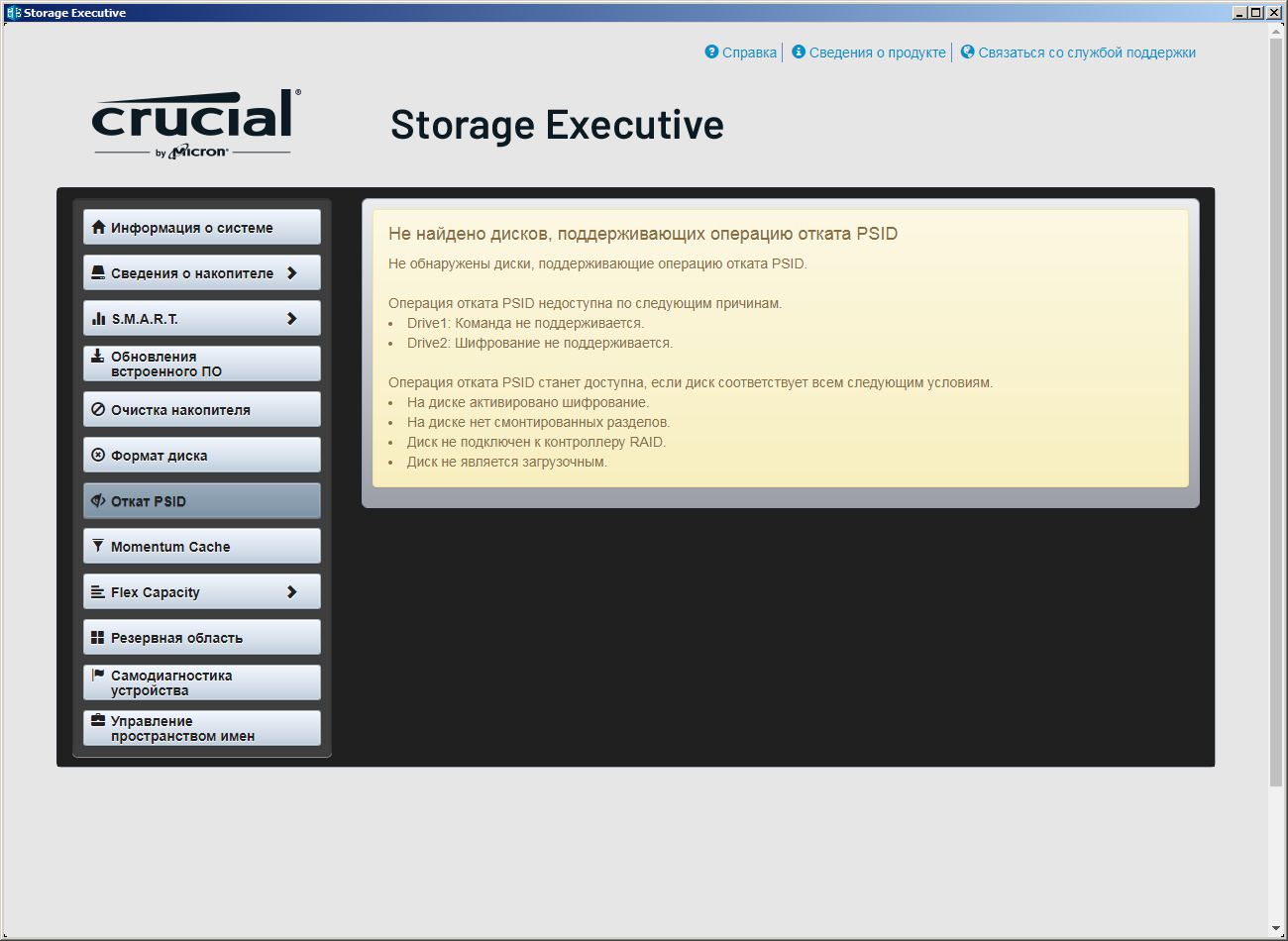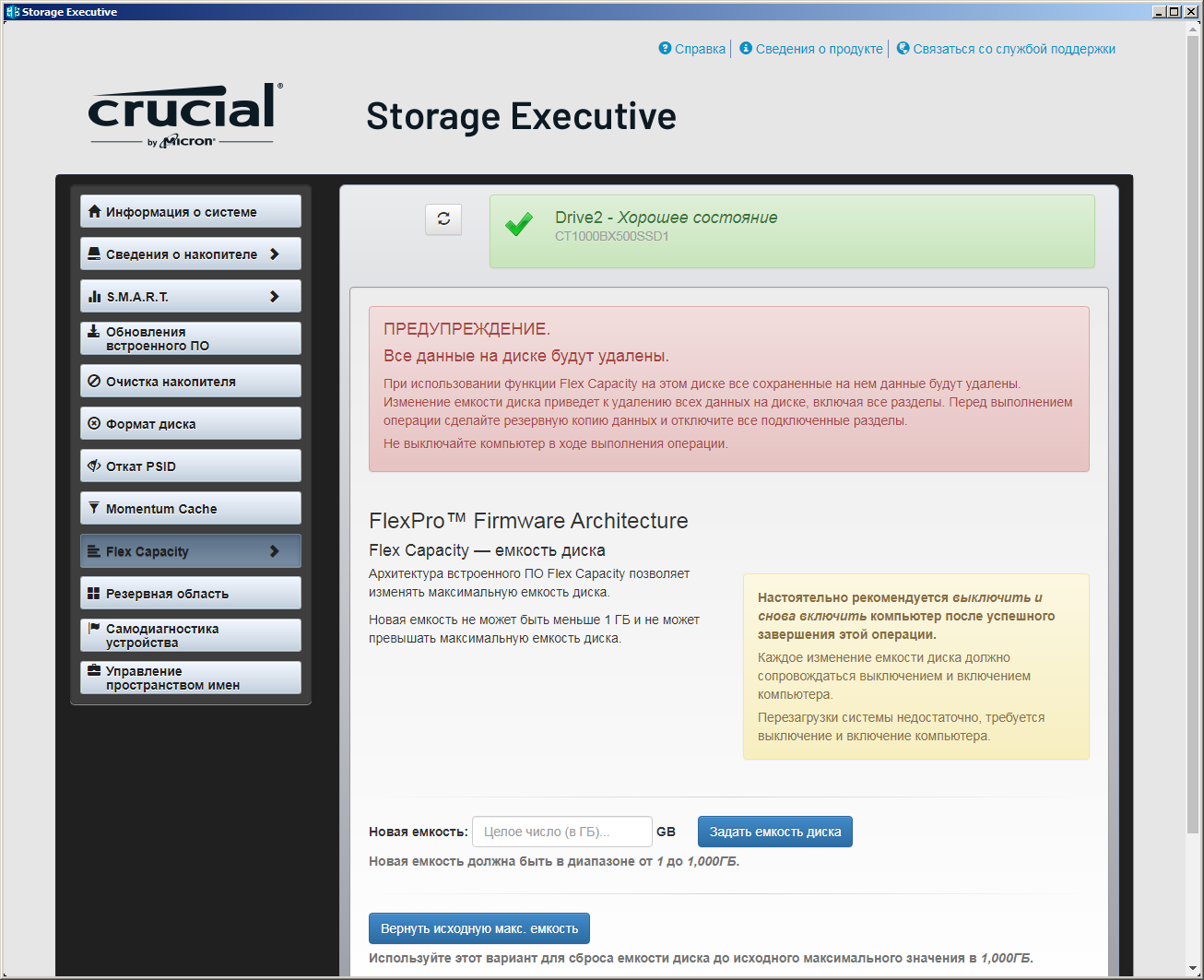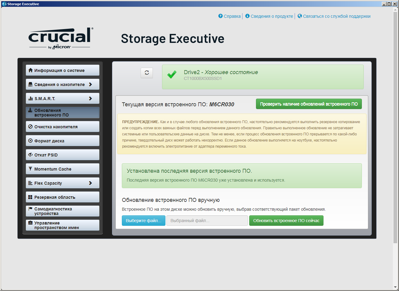 С подключением SSD, понятно, никаких нюансов не возникает. Обязательно рекомендуем скачать с официального сайта фирменное ПО Crucial Storage Executive – отличная утилита для мониторинга состояния и раскрытия всего функционала накопителя. Кстати, одной опцией мы обязательно воспользуемся ниже.