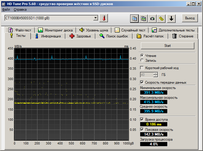 Crucial BX500, чтение блоками данных по 64 КБ: