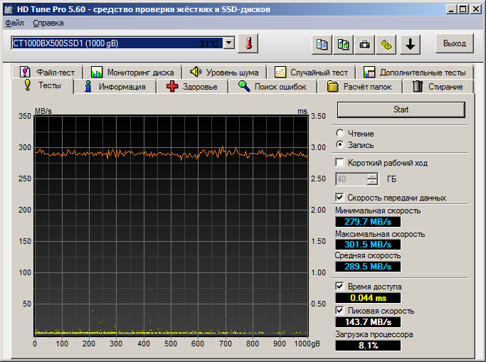 Разбираемся в отличиях и заодно дополняем таблицу технических характеристик. Начнем с простого – параметра TBW (Terabytes Written). Заявленный производителем гарантированный ресурс перезаписи. У героя обзора он в 1,5 раза выше, чем у второй модели CT960BX500SSD1, что должно стимулировать покупателя приобретать именно его. Стоит за этим техническое обоснование или же это чисто маркетинговая уловка, постараемся разобраться дальше.