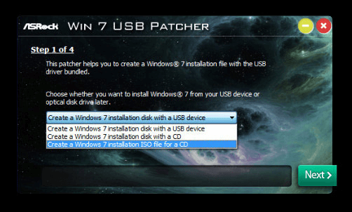 Create a Windows 7 installation disk with a USB device и нажимаем кнопку "Next".