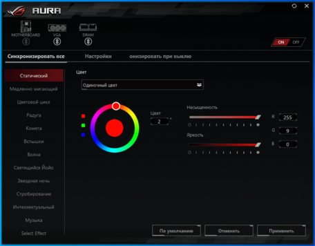 Помочь в реализации дизайнерских задумок пользователя призвана утилита AURA SYNC.