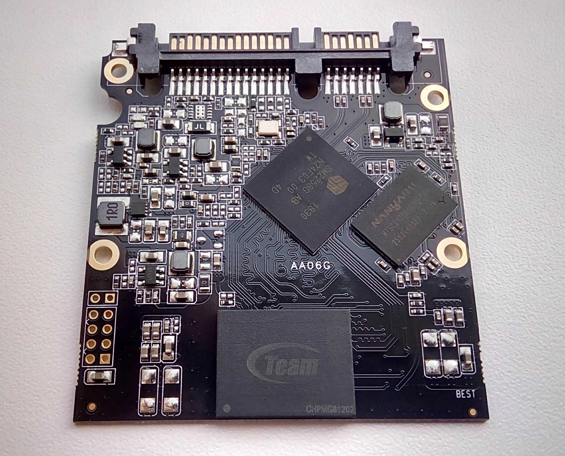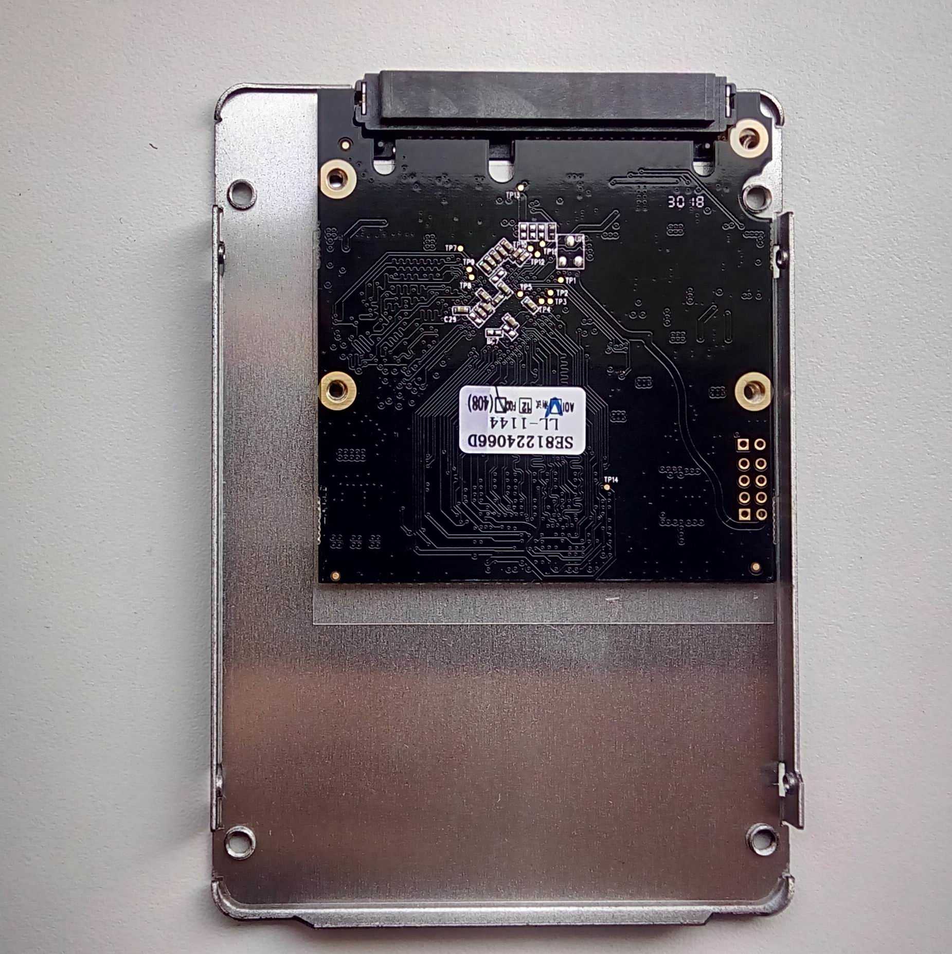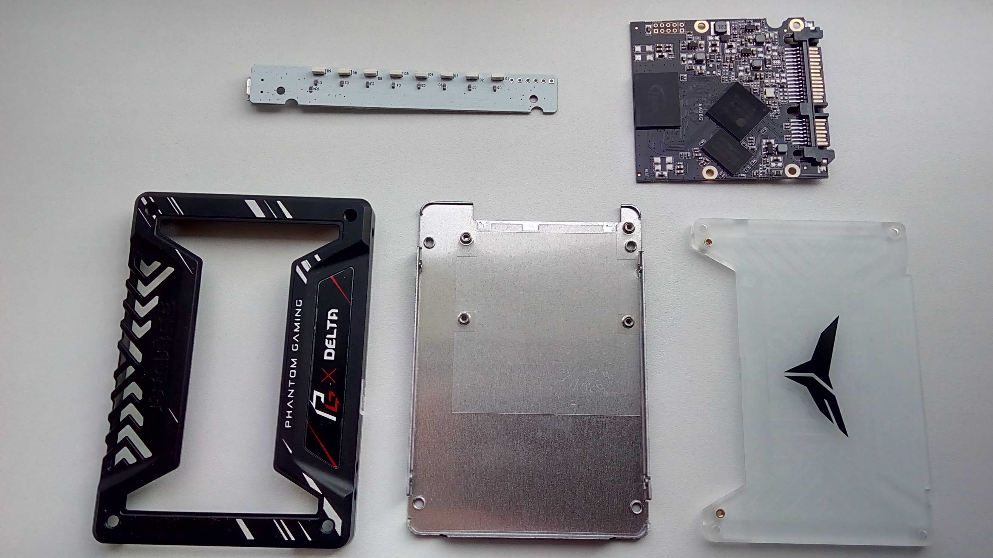 Плата подсветки расположена в корпусе таким образом, чтобы светодиоды излучали в торец вставки и равномерно ее подсвечивали. В основе SSD лежит контроллер Silicon Motion SM2258G и flash память собственной разработки. Также был замечен DDR3 буфер объемом 2 ГБ.