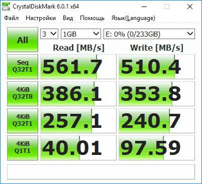 Утилита CrystalDiskMark – первая оценка работы SSD.