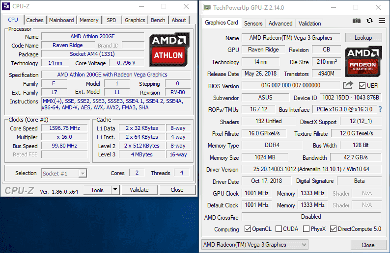 Частота оперативной памяти была установлена на отметке 2666 МГц, схема первичных задержек была приведена к 16-19-19-44_1Т, наиболее распространенной среди массовых модулей с указанной штатной тактовой частотой. Использовался наиболее свежий из доступных на момент начала тестирования графический драйвер Adrenalin Edition 18.10.1 beta. Популярные диагностические утилиты сообщают о тестируемом процессоре следующую информацию:
