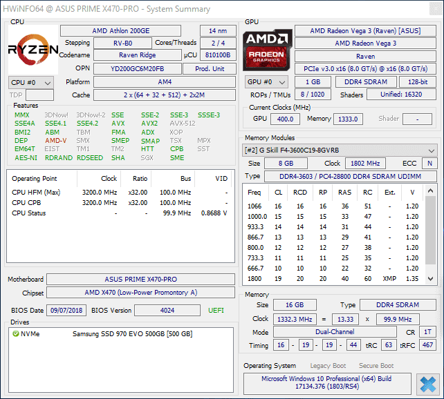 Материнская плата: ASUS PRIME X470-PRO (BIOS 4024)
