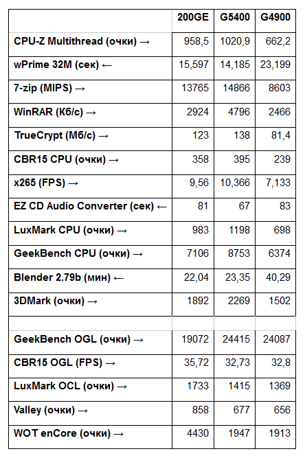 Как можно видеть из таблицы и наглядного графического сравнения результатов, наш сегодняшний герой 200GE оказался вполне конкурентоспособен для своей рыночной ниши. В вычислительных задачах мы, конечно, наблюдаем ожидаемое преимущество вычислительных ядер архитектуры Intel Kaby Lake по IPC, это сюрпризом не стало. Вопрос был в том, как велико это отставание, как скажется невысокая тактовая частота и какова эффективность технологии SMT применительно к 2-ядерной конфигурации. Таким образом, если рассматривать результаты комплексно и с учетом сложившейся на рынке ситуации с доступностью/ценами на процессоры Intel – отставание на наш взгляд не является значимым и принципиальным, отличить две системы с процессорами 200GE и G5400, что называется, «на глаз» будет невозможно. А по части производительности встроенного графического ядра Vega 3 заметно мощнее UHD 610 своего главного соперника. Тестирование в Unigine Valley и WOT enCore приятно удивило - продемонстрированные результаты в этих бенчмарках показывают, что встроенное графическое ядро состоятельно для игры в 720р на минимальных настройках в нетребовательные к мощности графической подсистемы проекты. Хотя такой задачи перед проектировщиками конфигурации графического ядра AMD явно не ставила и для игровых задач свою обновленную линейку Athlon производитель не позиционирует, ориентируясь только на любителей казуального гейминга. Во время прогона сцены бенчмарка WOT enCore показатель FPS колебался около отметки 24-27 кадров/сек на средних настройках качества в 1080р, превышая 35-40 на минимальных настройках в 768р. Тезисно выделим преимущества и недостатки протестированного 200GE: