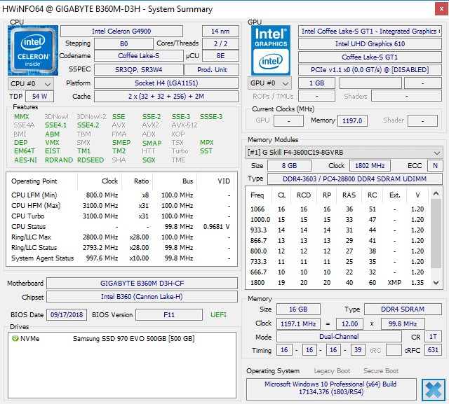 Материнская плата: Gigabyte B360M D3H (BIOS F11)