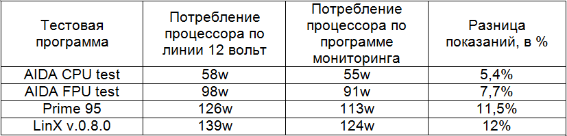 Разница между показаниями, полученными по результатам проведенных замеров и показаниями программного мониторинга, не вышла за рамки предполагаемой погрешности, следовательно, программный метод мониторинга мощности отображает близкие к реальным величинам значения.