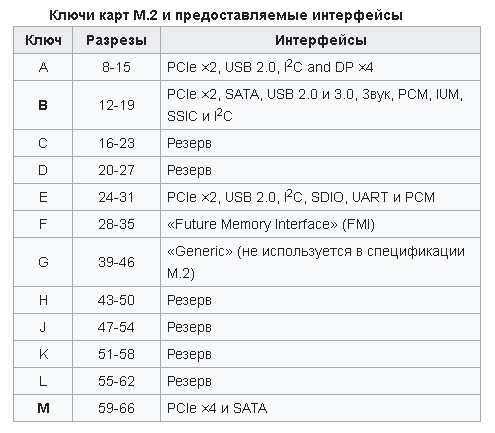 Кстати, использование при подключении устройства только двух линий PCIe привело еще к одной необычности – появлению на контактной площадке с целью большей совместимости двух ключевых разрезов В и М вместо «привычного» М.