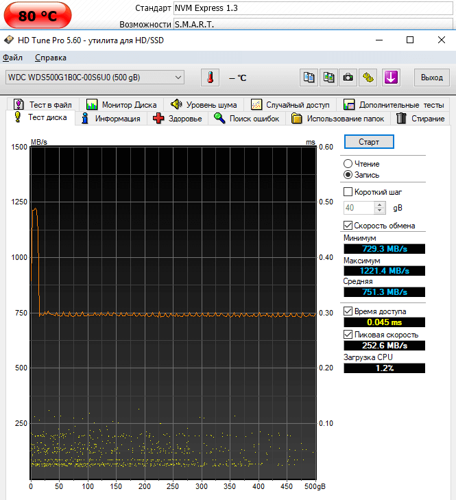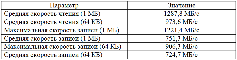 Полученные значения скоростей последовательного чтения и записи соответствую заявленным.
