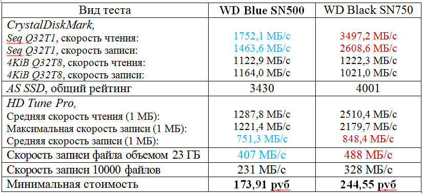 Точки над «и» расставляет стоимость обоих устройств. Разница в 40 % – существенный аргумент, чтобы уже задуматься о рациональности предпочтения WD Black SN750 сегодняшнему герою обзора.