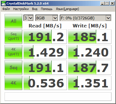 Первые результаты не разочаровали – заявленная максимальная скорость передачи данных по внешнему диаметру в 190 МБ/с получена.