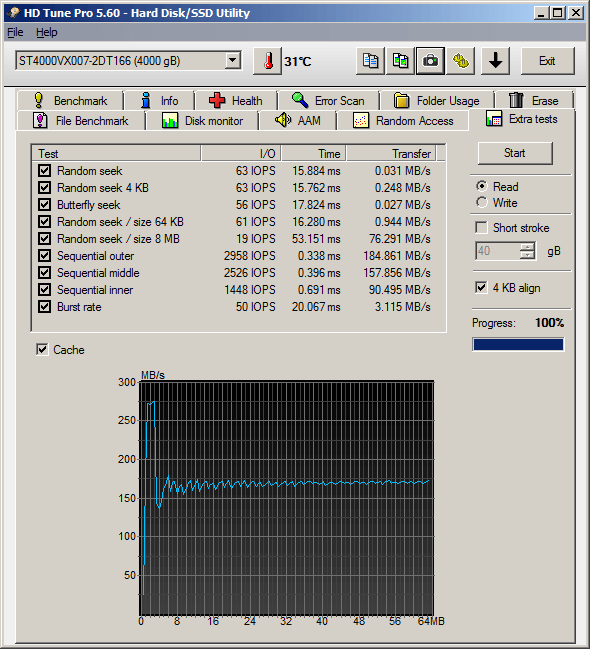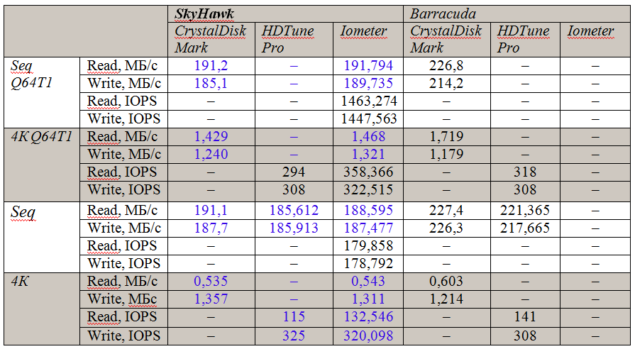Результаты тестирования Seagate SkyHawk ST4000vx007: